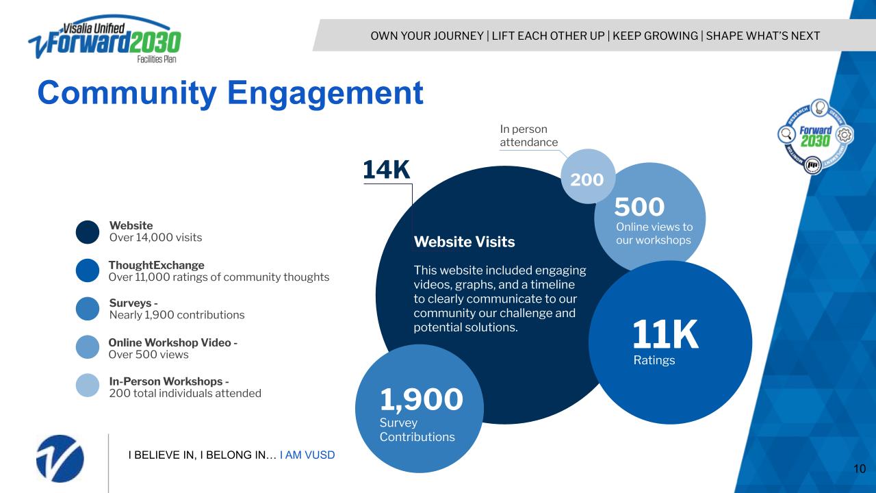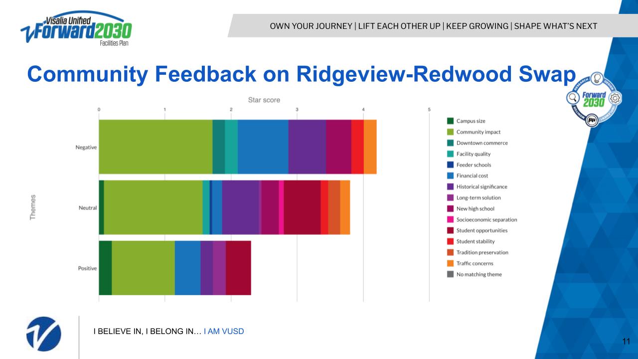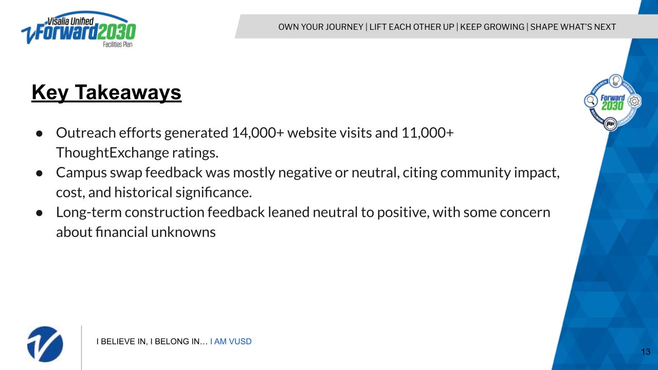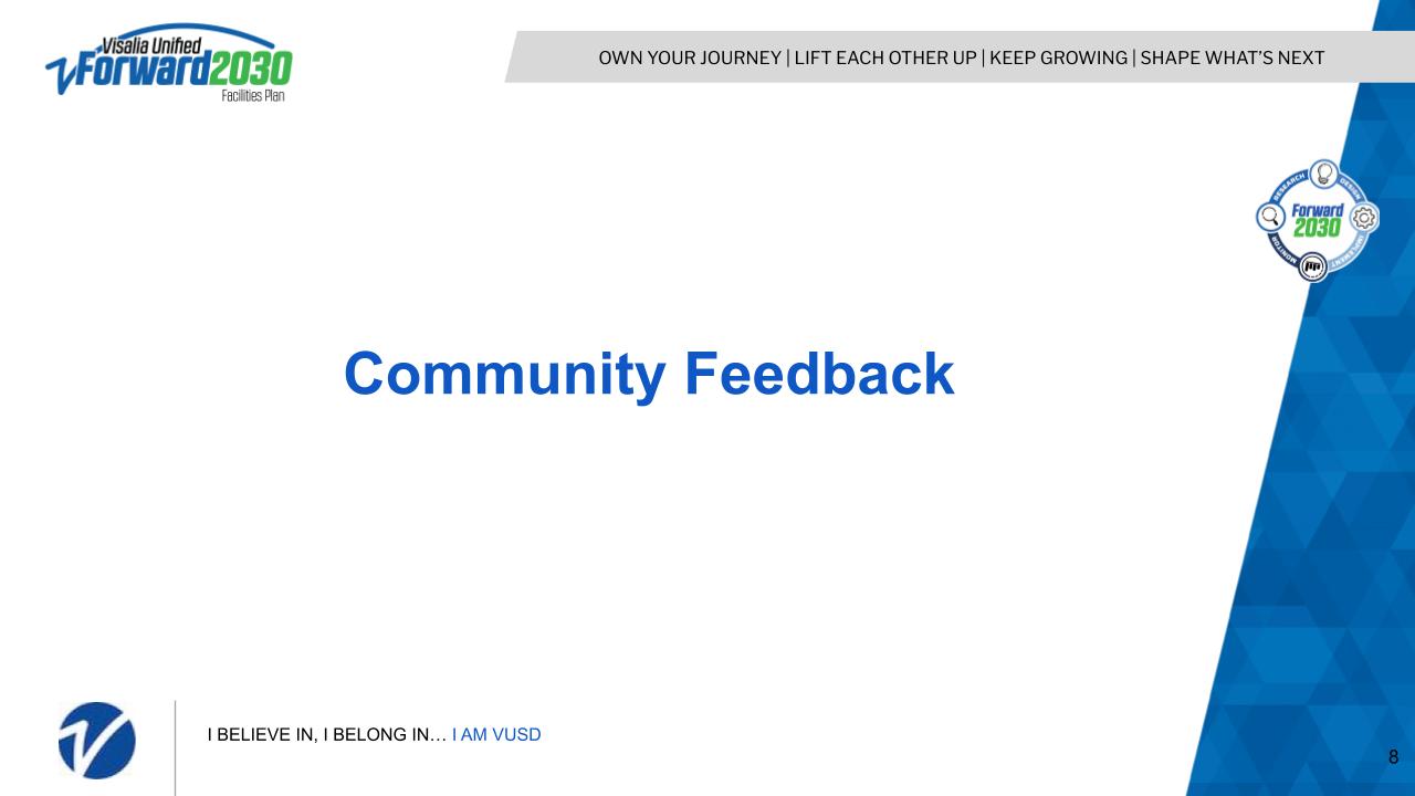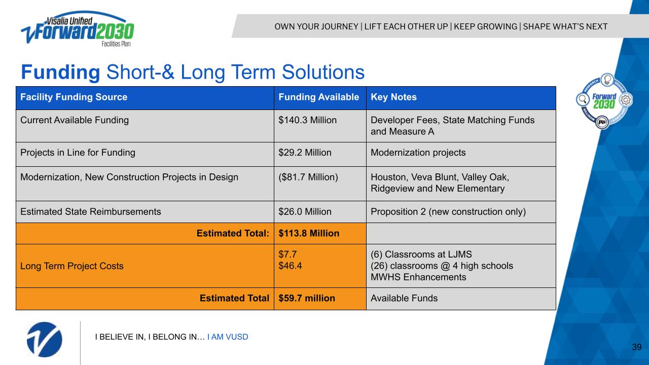 We are now at the mid-way point to long-term planning. This midway point assesses the needs of the school district that continue boundary discussions along with building on existing campuses to ensure our students are set for the next 6-10 years. In this midway point, we are making a recommendation that is necessary for Visalia Unified students and the community. We look forward to seeing you in the coming weeks as we go into the community to speak to you about these necessary changes.